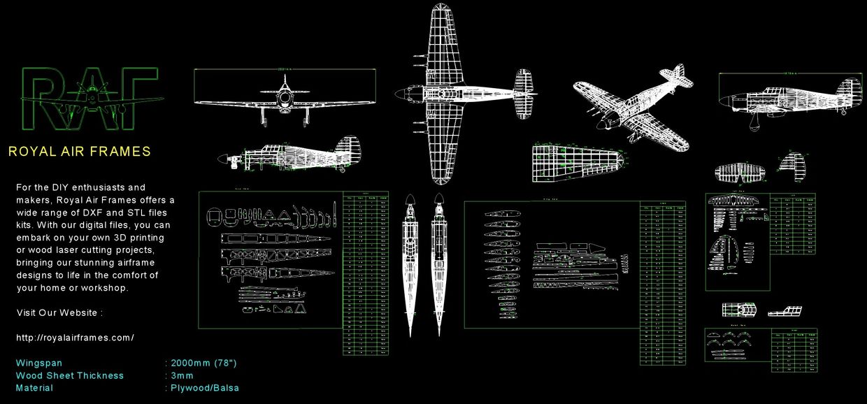 This wooden short kit includes professionally prepared DXF/DWG laser cutting files for accurate, clean fabrication of all structural components. You also get full-size PDF plans for traditional building methods, along with STL files to 3D print scale details such as the cowl, canopy, air intakes, and other external features—bringing your model to life with true-to-scale realism.