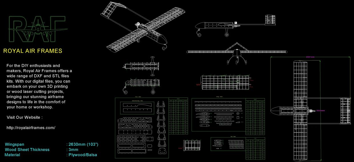 ✔️ Complete DXF files for laser-cut plywood & balsa – precise, repeatable construction